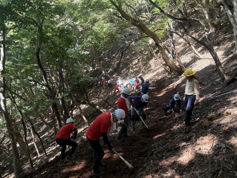 今回は林野火災の被害にあった綾里峠で、落葉や土砂に埋もれてしまったトレイルの整地を行いました。地域の方やハイカー、行政や企業の皆さまなど、この道を愛する多くの方々が協力してくださいました。林野火災からの復興を願う皆さんの温かい想いが形になり、より良いトレイルへと生まれ変わりました。